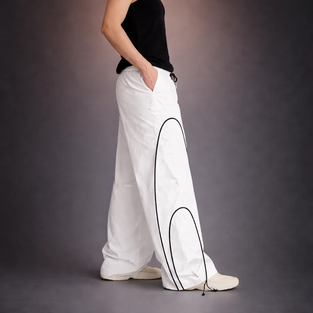 Upgrade your casual wardrobe with our black sporty deconstructed loose pants. These stylish pants feature a relaxed fit and a deconstructed design for a modern and edgy look. The loose silhouette allows for maximum comfort and movement, making them perfect for both everyday wear and athletic activities. Crafted from soft 100% polyster, these pants are both breathable and durable. Pair them with your favorite sneakers or sandals for a trendy and sporty outfit.