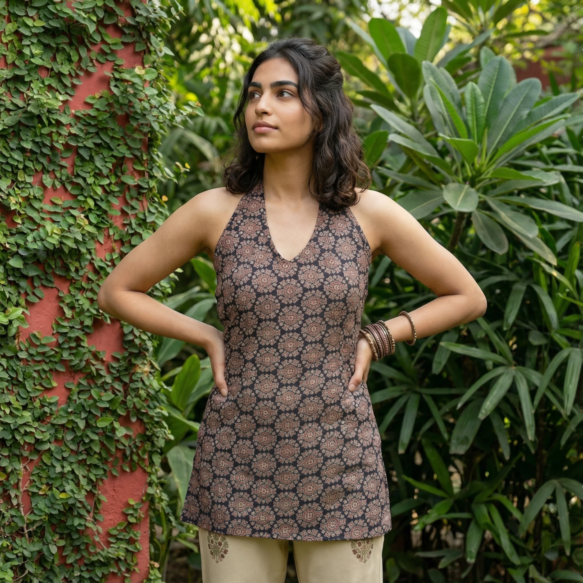 Upgrade your wardrobe with this stylish halter neck corset kurti, designed to give a flattering and elegant look. Perfect for parties, outings, and special occasions, this kurti blends modern fashion with comfort effortlessly.