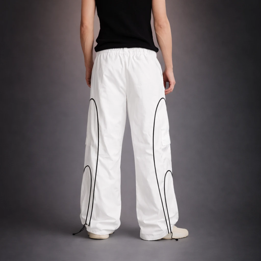 Upgrade your casual wardrobe with our black sporty deconstructed loose pants. These stylish pants feature a relaxed fit and a deconstructed design for a modern and edgy look. The loose silhouette allows for maximum comfort and movement, making them perfect for both everyday wear and athletic activities. Crafted from soft 100% polyster, these pants are both breathable and durable. Pair them with your favorite sneakers or sandals for a trendy and sporty outfit.